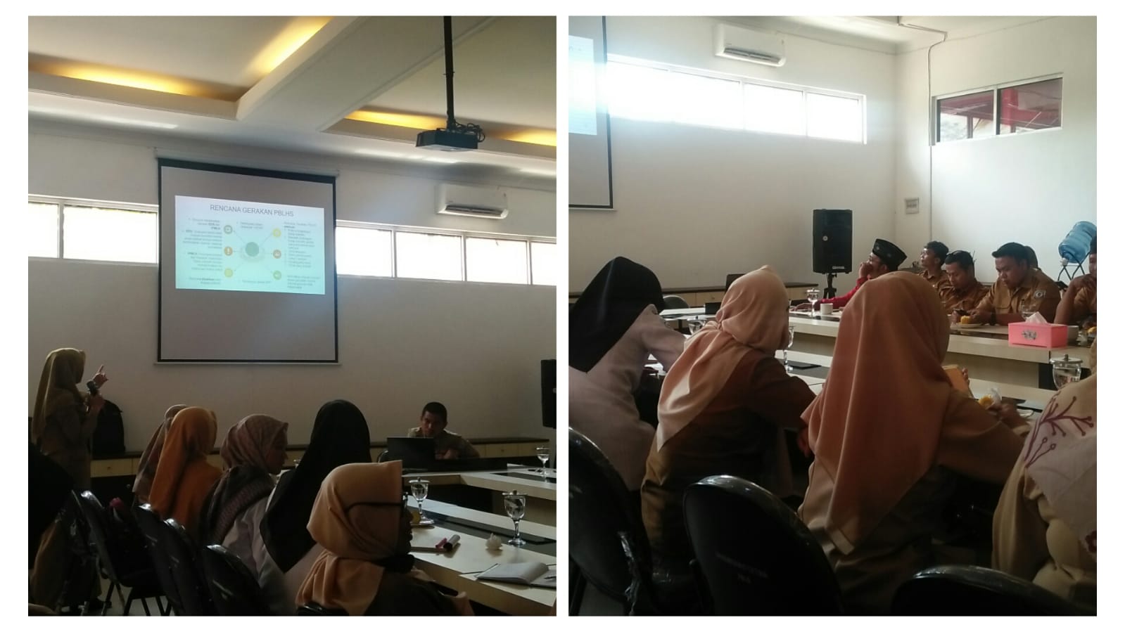 “Sebelum mengusulkan menjadi sekolah adiwiyata, sekolah secara kolektif melakukan gerakan PBLHS (Peduli Berbudaya Lingkungan Hidup Sekolah) yang dilakukan secara sadar, sukarela, berjejaring dan berkelanjutan oleh sekolah dalam menerapkan prilaku ramah lingkungan hidup,” demikian tutur Bu Tutun salah satu narasumber.